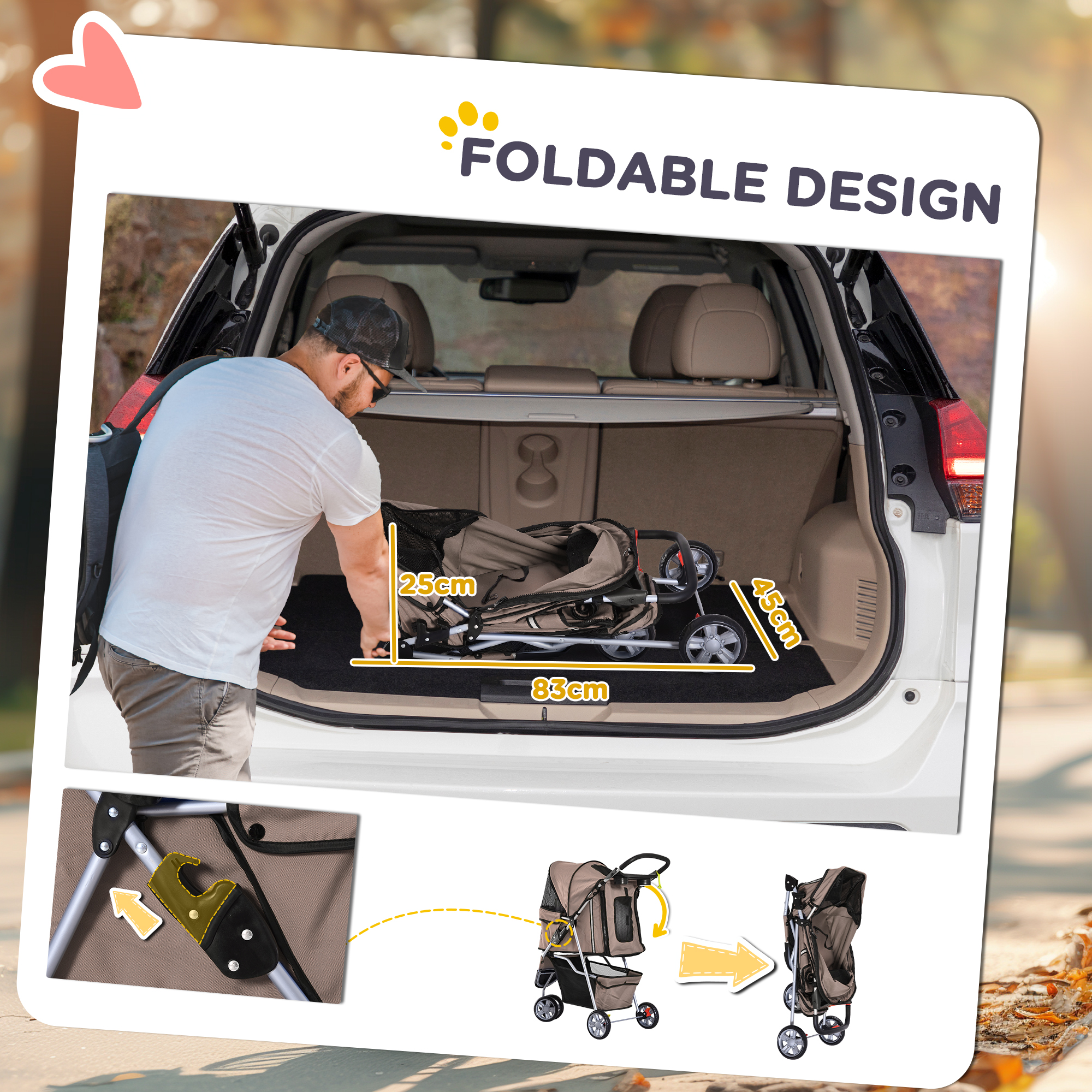 - Convenient Foldable Design: Easily collapsible, this foldable stroller is suitable for storage and transport, making travel with your pet effortless and stress-free.