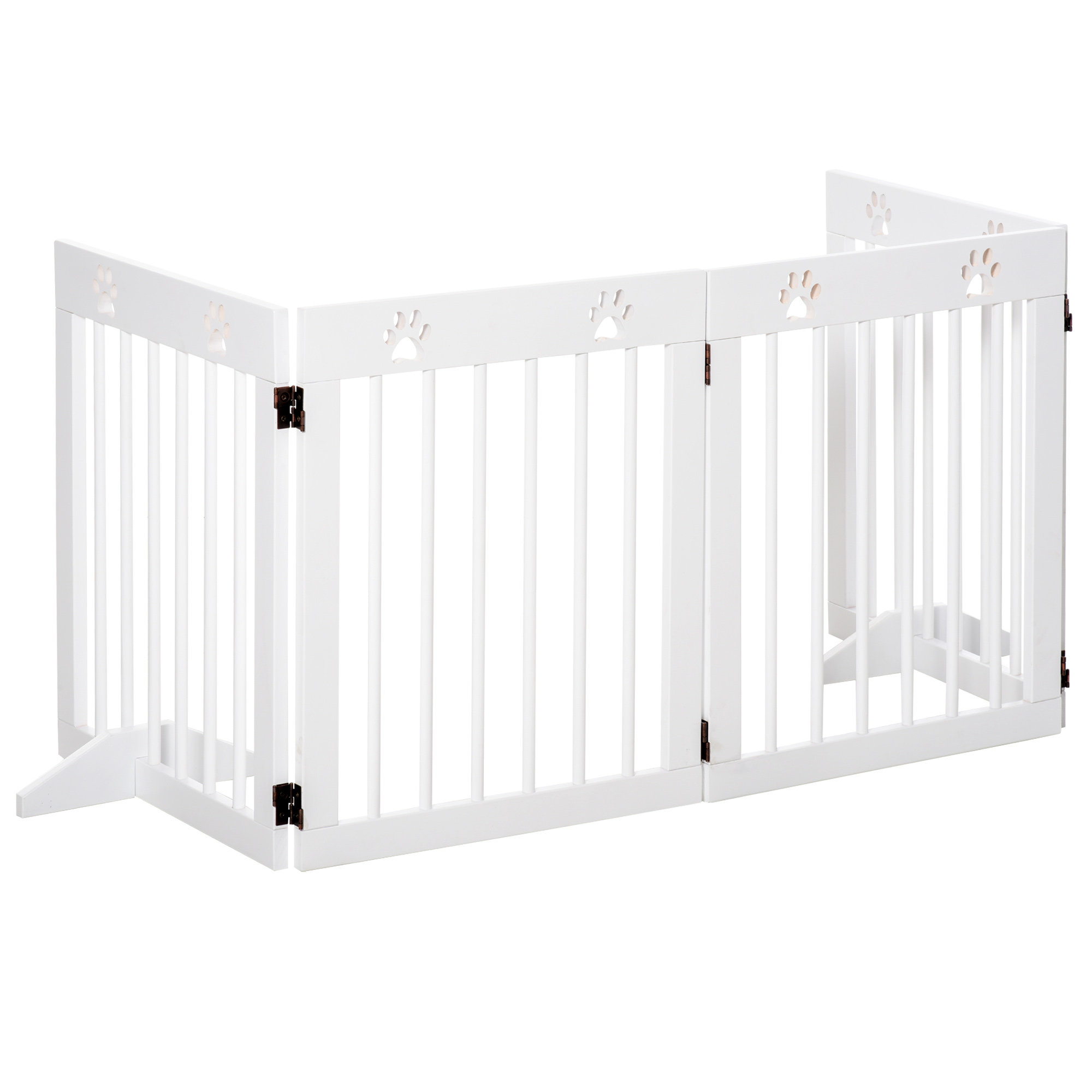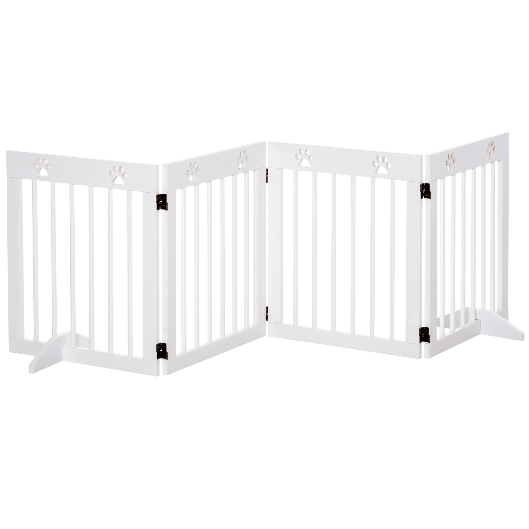 PawHut 4 Panel Freestanding Pet Gate: 80.25″ Wide White Wooden Dog Barrier, Foldable & Durable Design | Aosom Canada