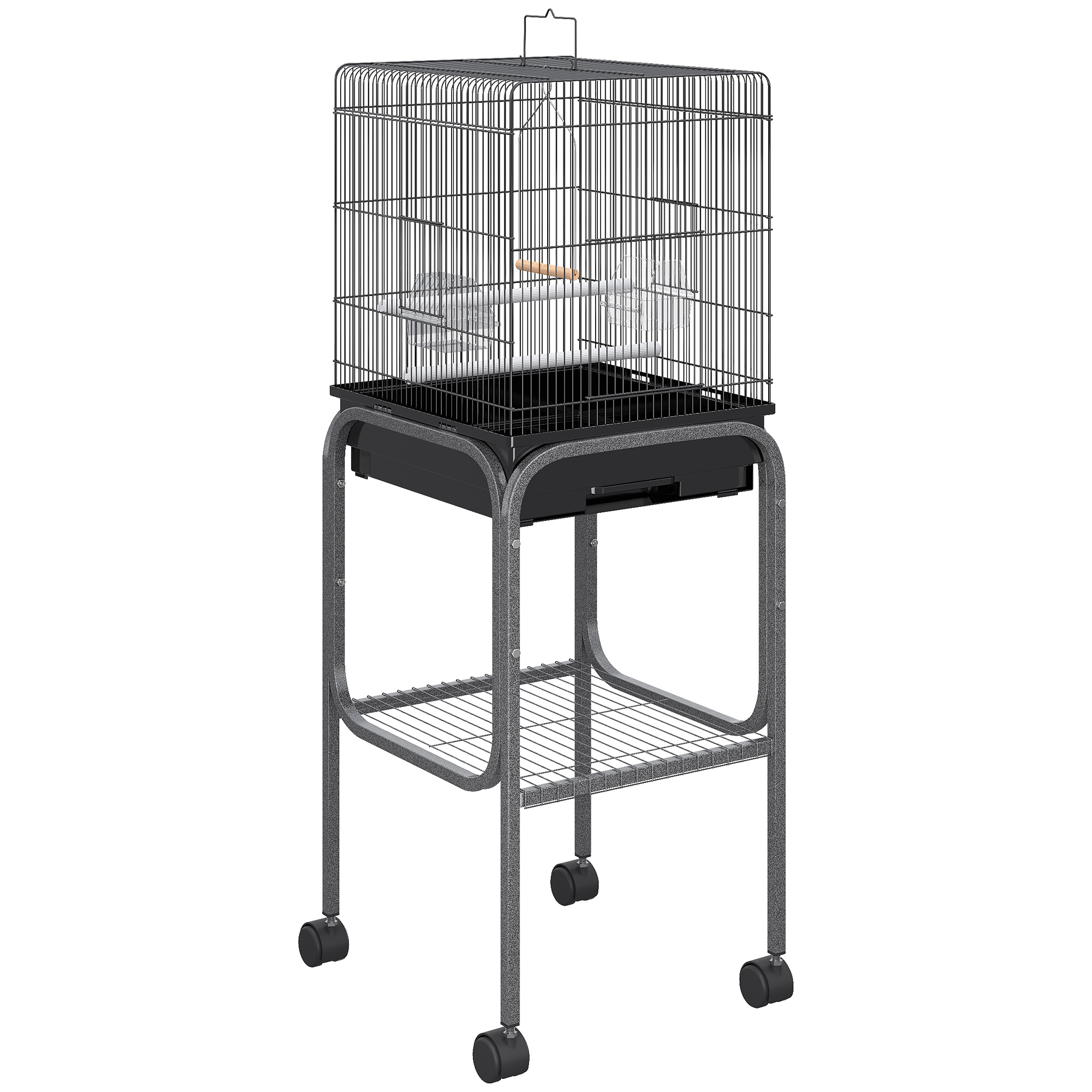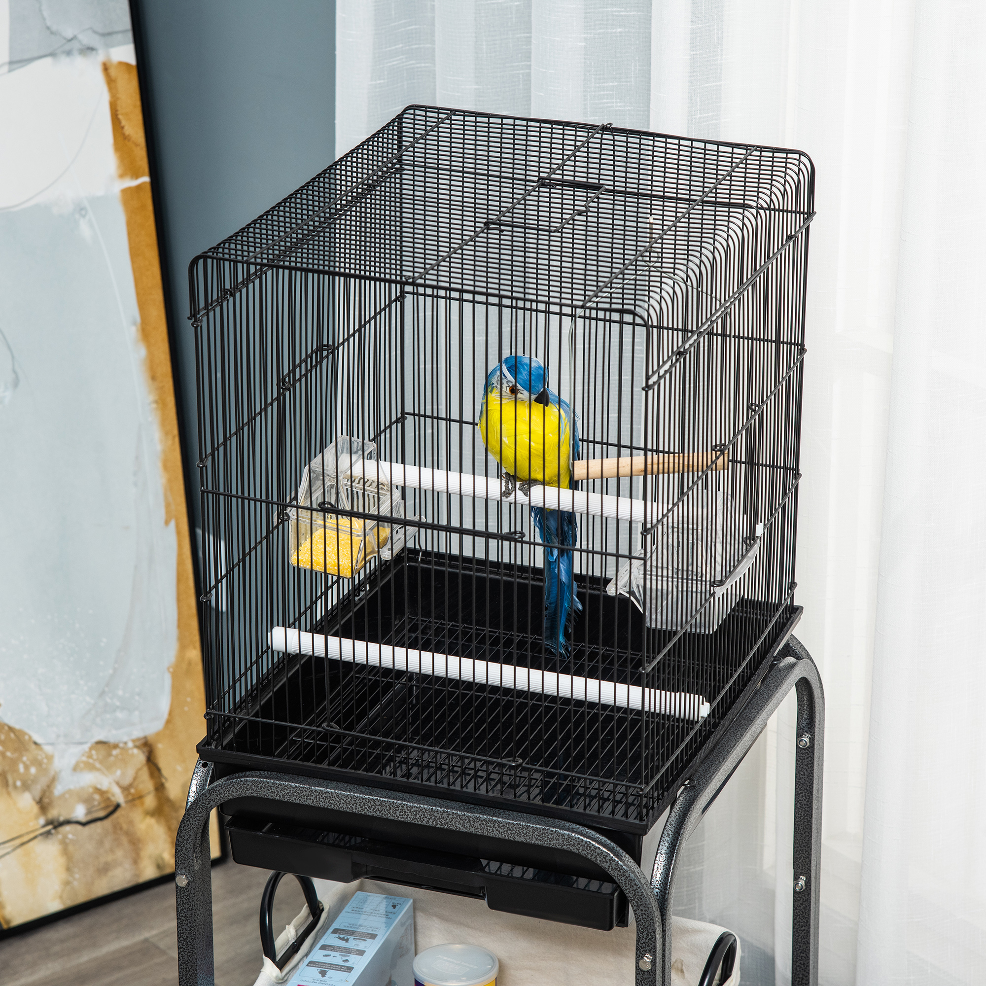 PawHut 44.5″H Metal Bird Cage for Parrots with Play Spot Stand Wheel Storage Shelf Multi-doors Black | Aosom Canada