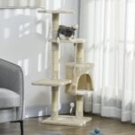 PawHut 44″ Multi-Level Cat Tree: Scratcher, Kitty Condo, Activity Center & Furniture Post in Beige Finish | Aosom Canada