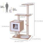 PawHut 47″ Premium Wood Cat Tree: Kitty Scratching Post, Kitten House Condo, Activity Center & Modern Pet Furniture with Cushions | Aosom Canada
