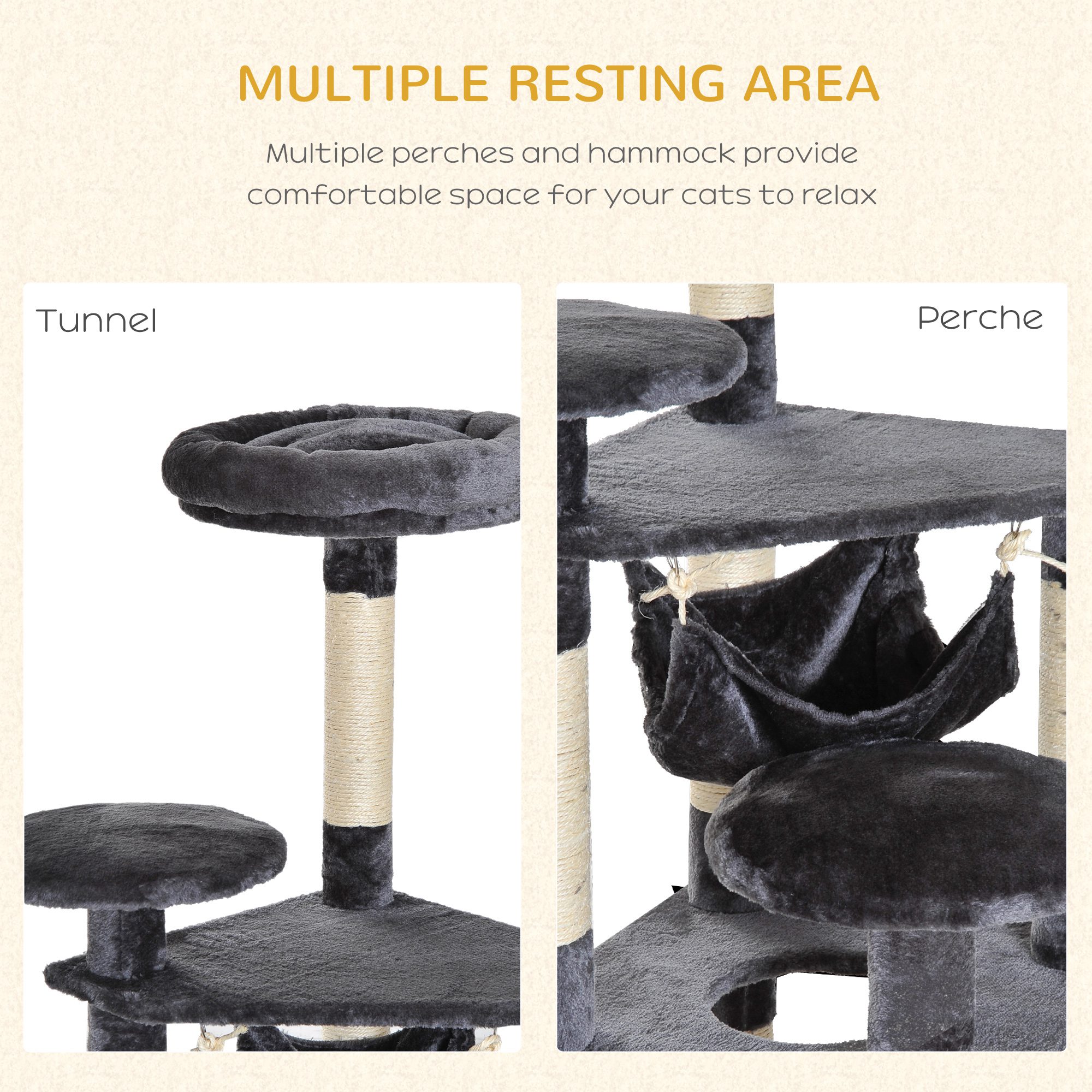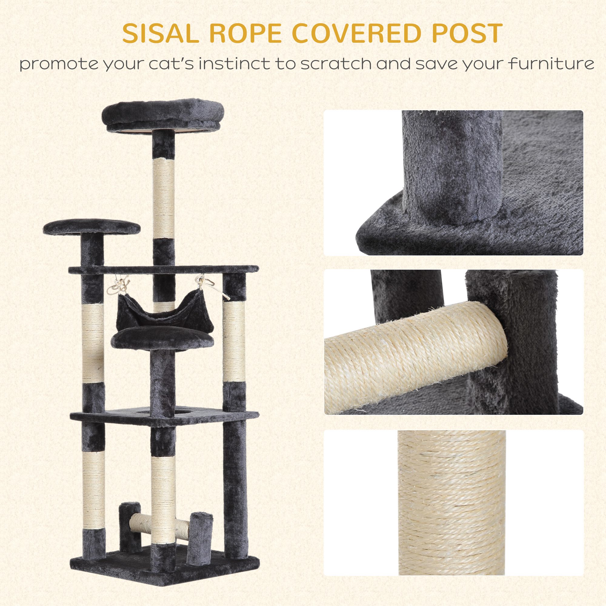 PawHut 52″ Multi-Level Cat Tree Tower: Kitten Scratcher, Activity Center, Play House with Hammock in Grey | Aosom Canada