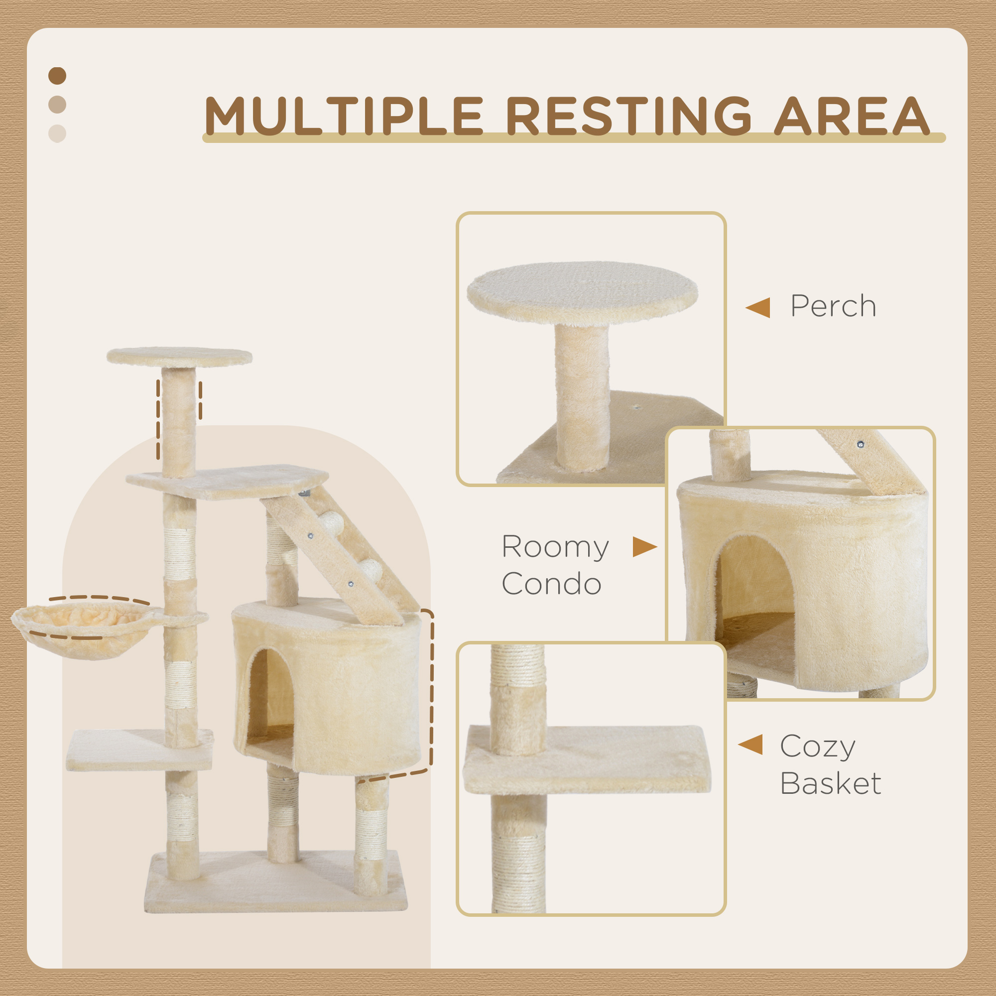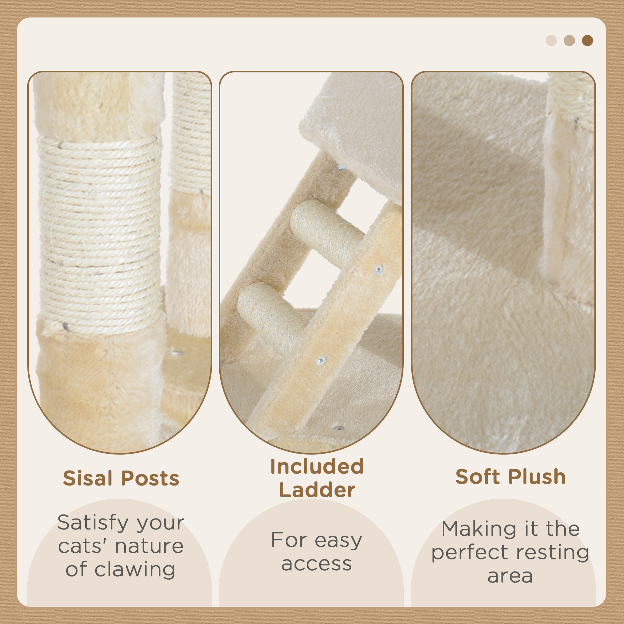 PawHut Cat Tower Activity Center: 49″ Kitten Scratching Post Play House with Beige Finish for Feline Enrichment | Aosom Canada