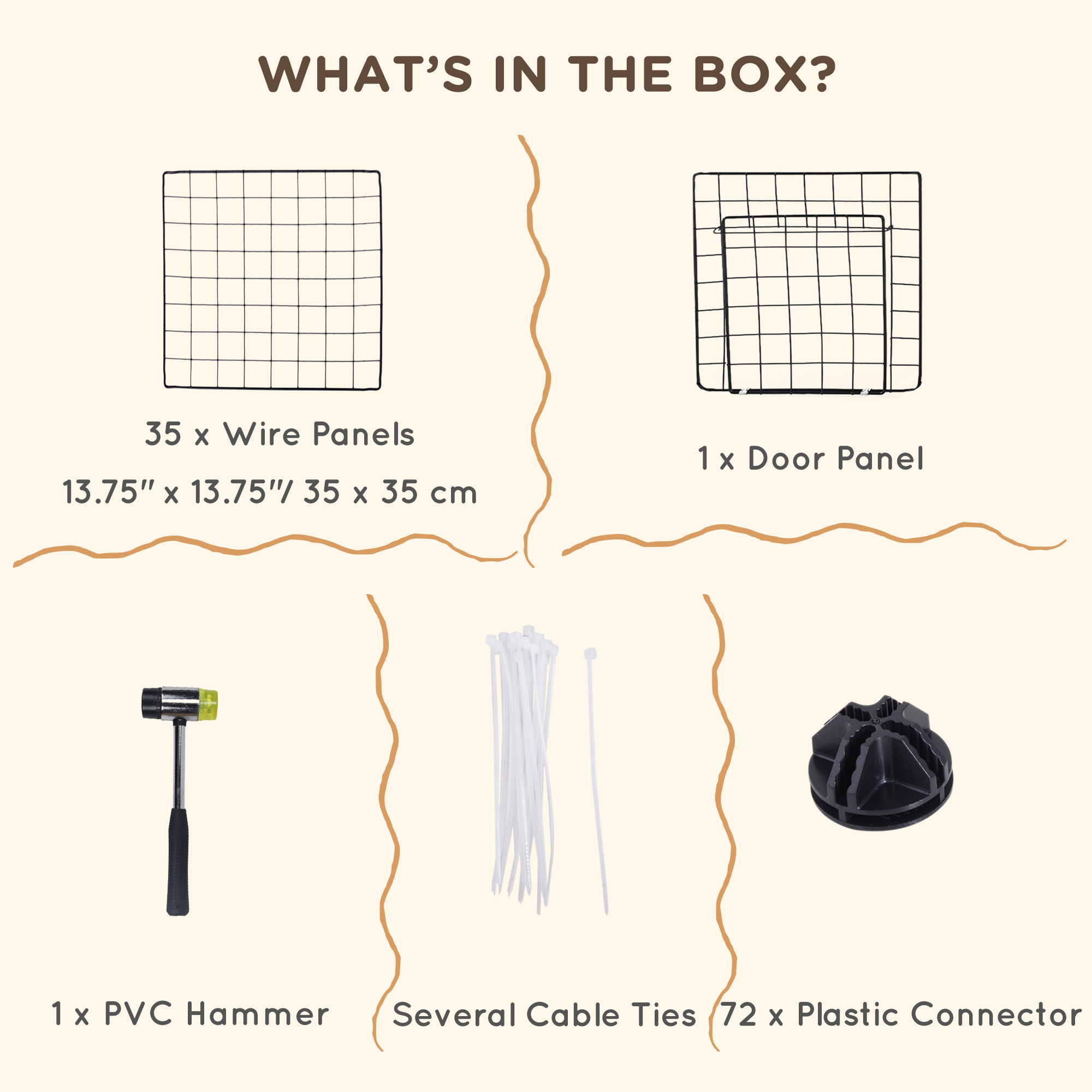 - Dimension: Overall dimensions: 57.5″ L x 28.7″ W x 28.7″ H (146 x 73 x 73 cm), 36 panels in total. Easy to keep an eye on them from any angle. Rounded edges to protect animals from harm.