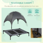 - Elevated Airflow: An outdoor dog bed with canopy, cot-style design lifts your pet off of the ground which allows air to flow freely on all sides and underneath.