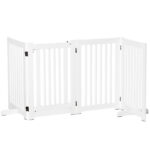 PawHut Freestanding Wooden Pet Gate: Z-Shaped 4 Panel Design with Door for Indoor Doorway Barriers | Aosom Canada