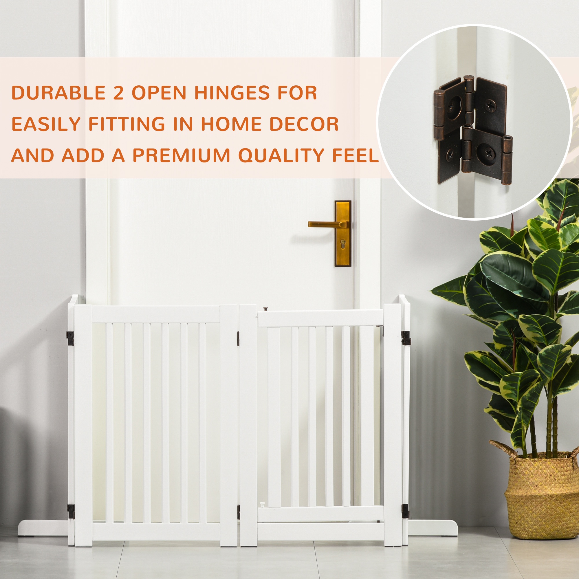 - Freestanding Design: Consists of 4 panels, connected and secured together with sturdy hinges, which allows the free standing dog gate and fold out into a Z-shape configuration.