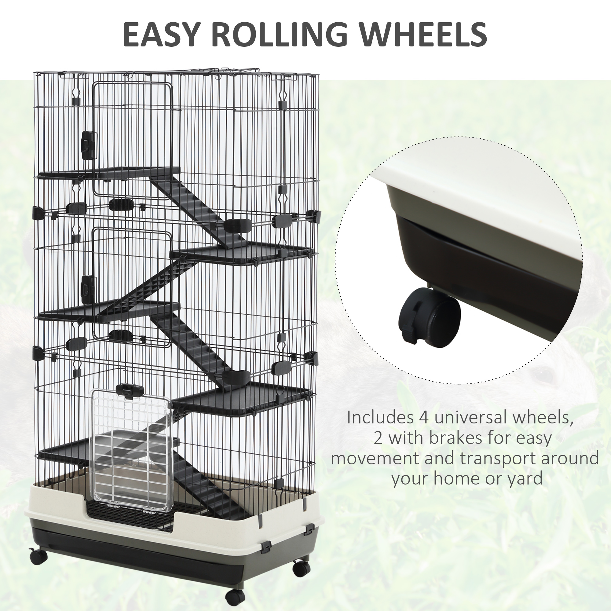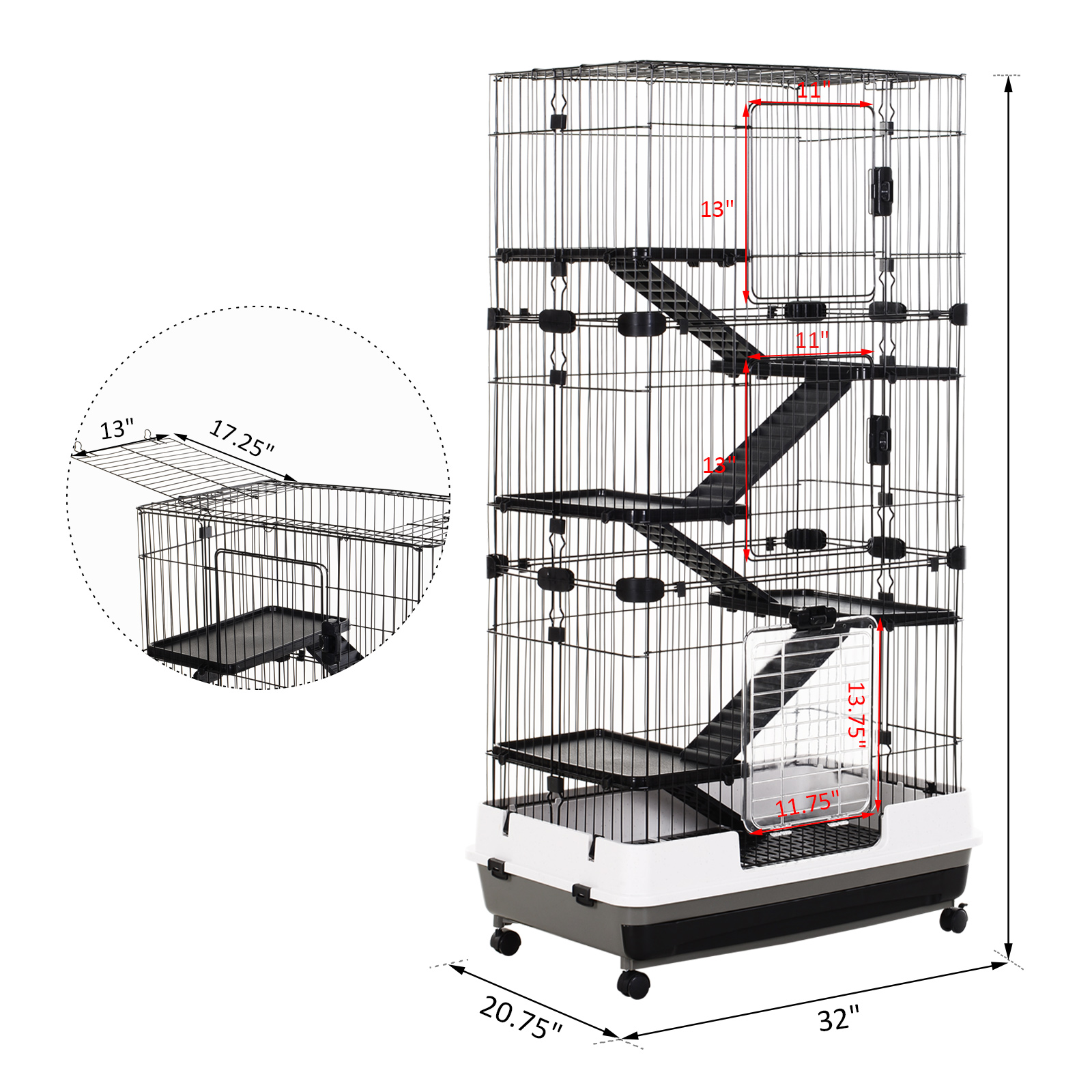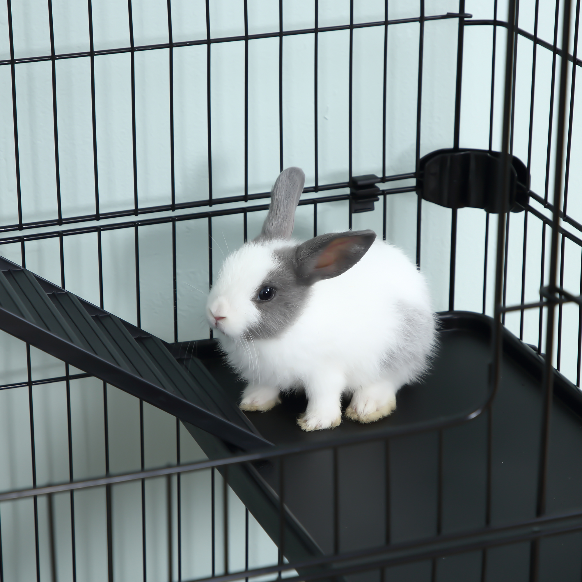 - Deluxe Animal Cage: This wheeled indoor fancy 6-level habitat in beautiful black and white colors is great for your small pet to live.Ideal for small pet of large size such as rabbits, pet mink, chinchillas, etc. Note: Not suitable for hamster and rat.