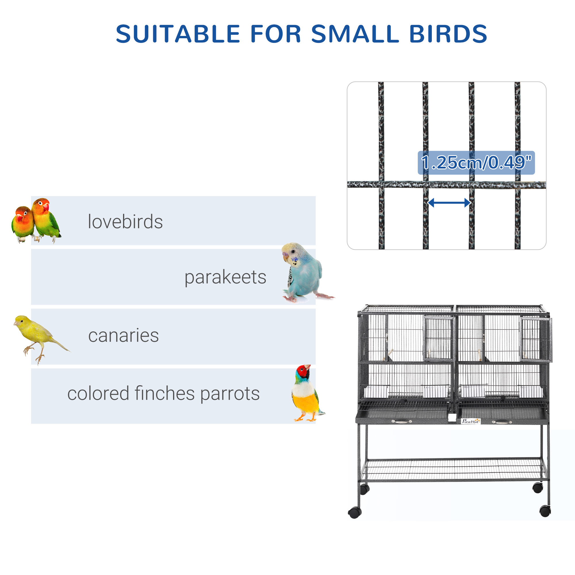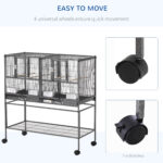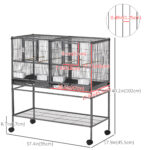 PawHut Large Double Rolling Metal Bird Cage Bird House with Removable Metal Tray, Storage Shelf, Wood Perch, Food Container | Aosom Canada
