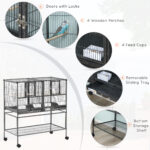 - Sturdy Construction: With its sturdy steel frame, this canary cage provides a durable home for birds to thrive. With four wheels at the bottom, you can easily move the cockatiel cage around and two have brakes to keep it in place.