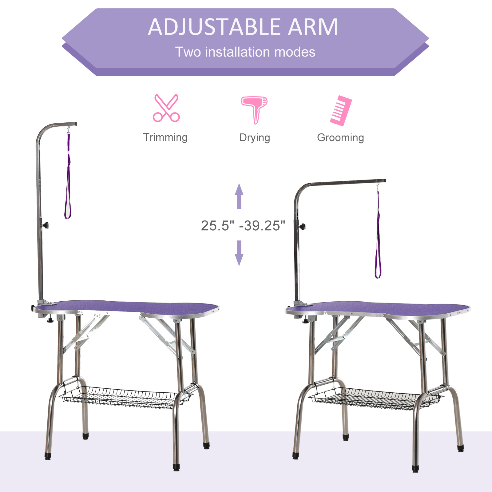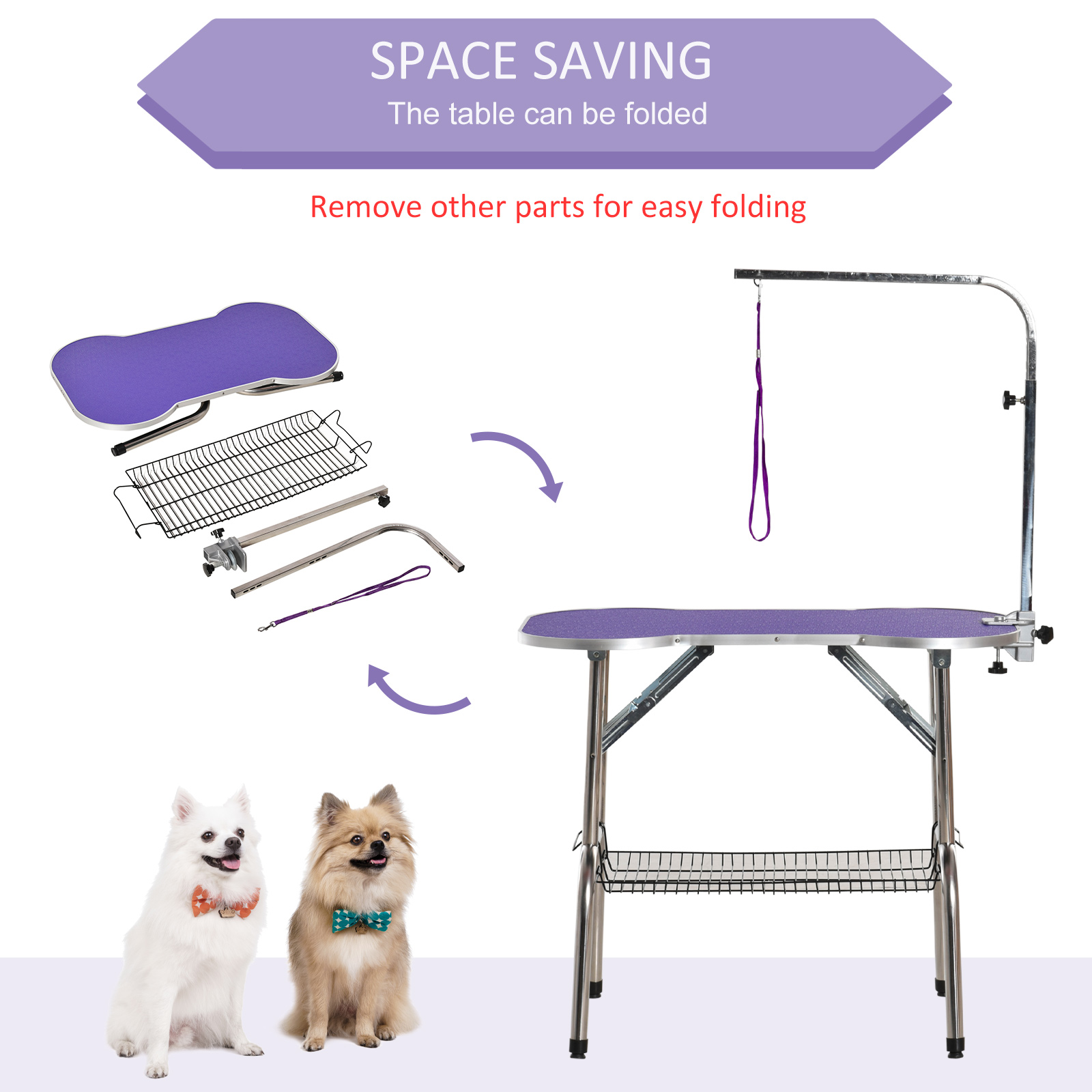 - SPACE SAVING: Features an underneath basket to store a variety of pet grooming tools as well as a foldable design for added convenience and save your room space. Other parts need to be removed when folding the table.