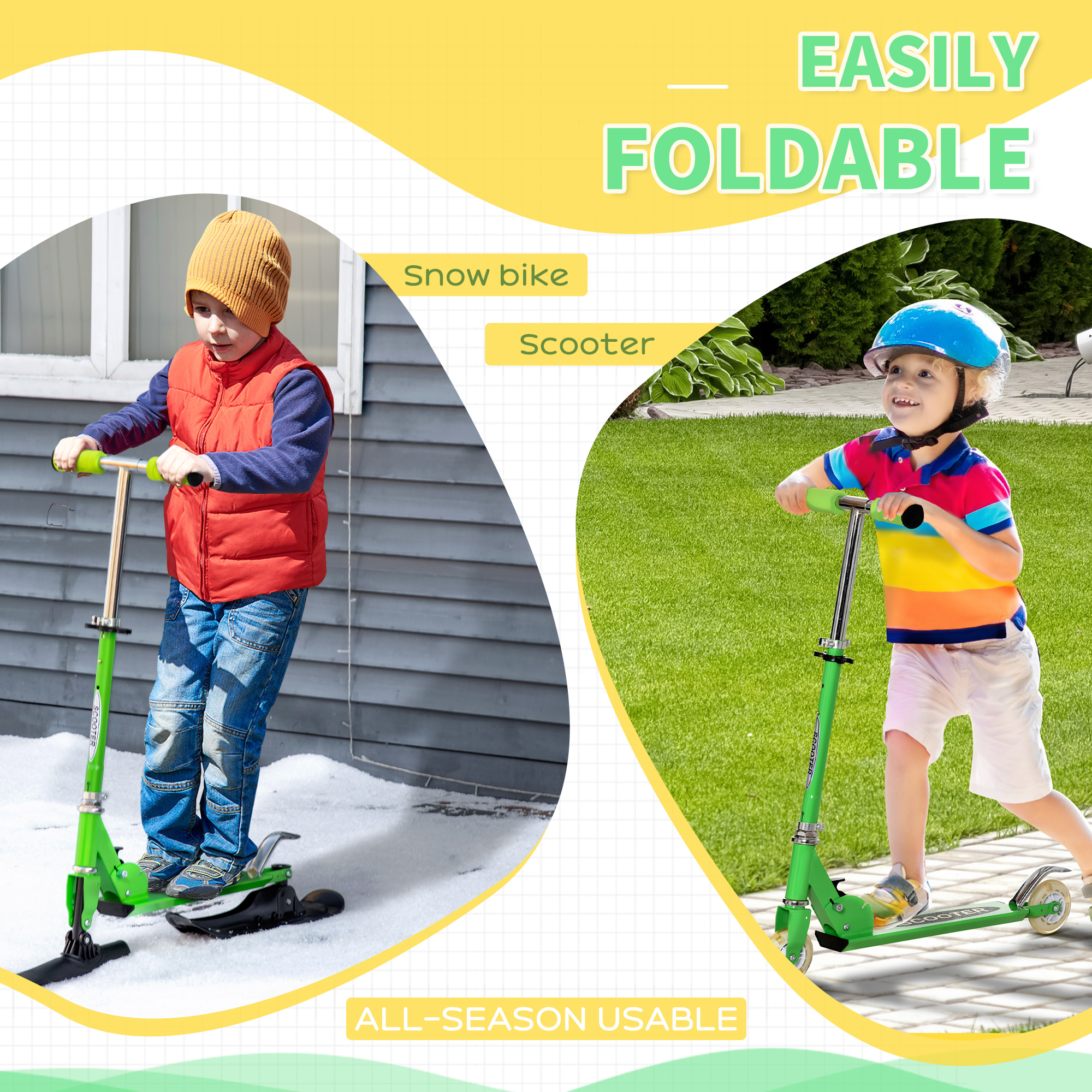 Qaba 2-in-1 Convertible All-weather Scooter Snow Street Amphibious w/ Wheels Blades Green | Aosom Canada