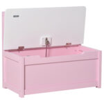 Qaba 2-IN-1 Wooden Toy Box Kids Seat Bench Storage Chest Cabinet Chunk Cube with Safety Pneumatic Rod Pink | Aosom Canada