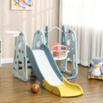 Qaba 3-in-1 Kids Slide & Swing Set – with Adjustable Basketball Hoop, Toddler Climber Playground, Exercise Toy | Aosom Canada