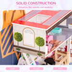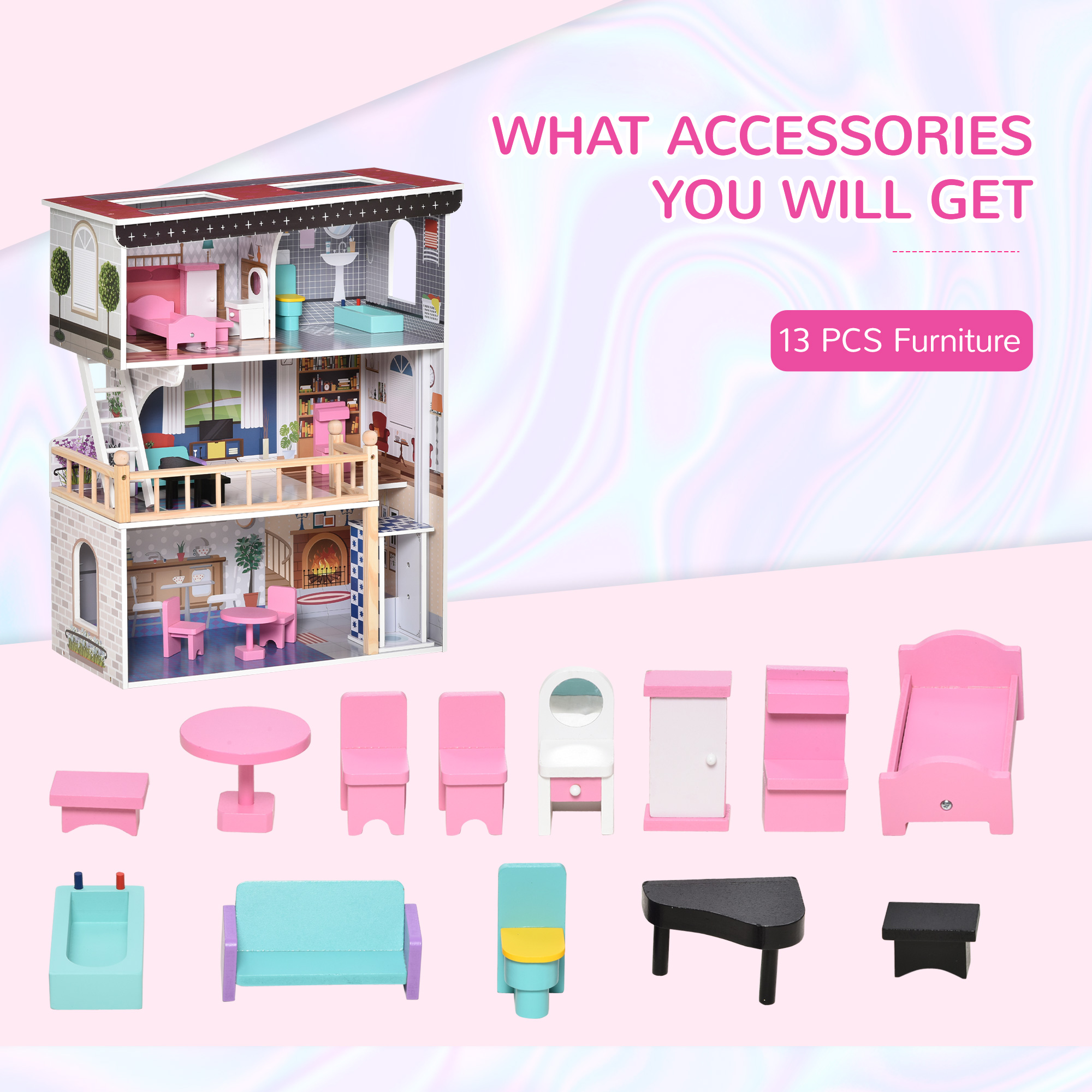 Qaba Dreamhouse Dollhouse for Kids – 13 PCS Pink 3-Story Villa with Furniture Accessories, Perfect for 3-6 Years Old | Aosom Canada