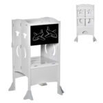 - Suitable for Many Occasions: The toddler standing tower is pretty helpful and ideal for many occasions such as kitchen, washroom, and dining room to cultivate children’s good habits of independence. The toddler tower comes with a chalkboard attached to the back for increased creativity.