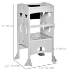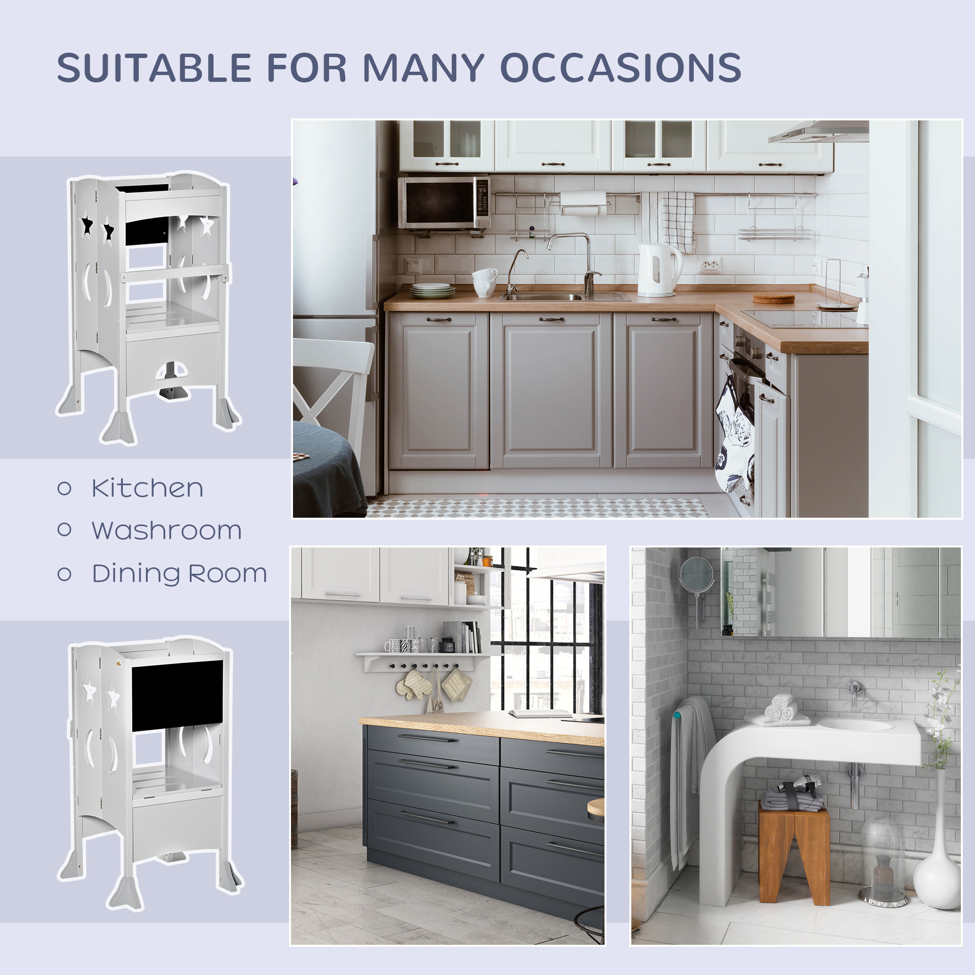 Qaba Foldable Kids Kitchen Helper Stool with Blackboard & Lockable Handrail for Ages 3-6 in Grey | Aosom Canada