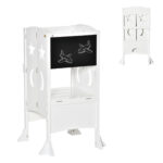 Qaba Foldable Toddler Kitchen Stool with Blackboard & Safety Handrail in White for Ages 3-6 | Aosom Canada