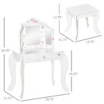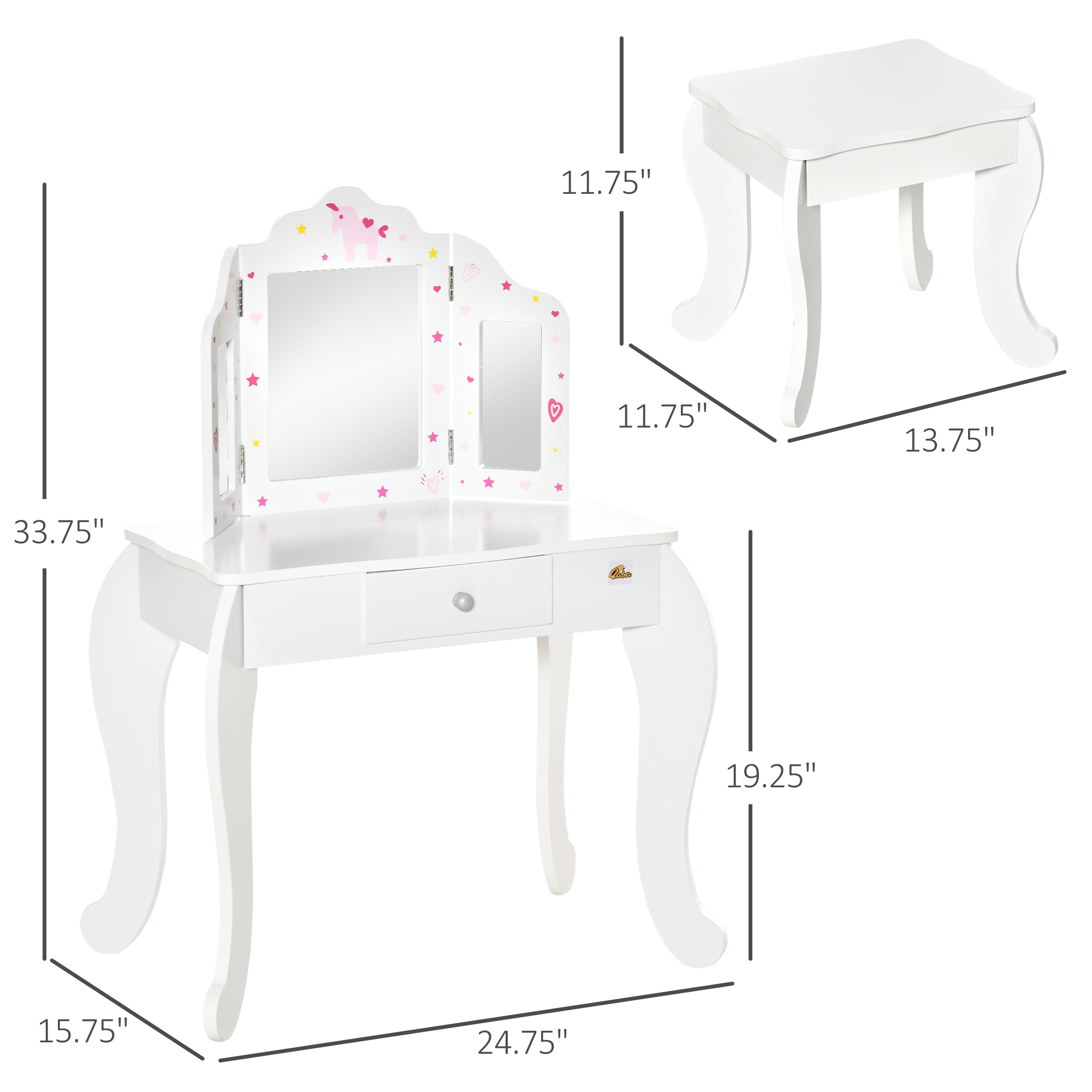 Qaba Girls Vanity Set Stool Dressing Table Tri-Fold Mirror Drawer Star Heart Design Makeup Desk White | Aosom Canada