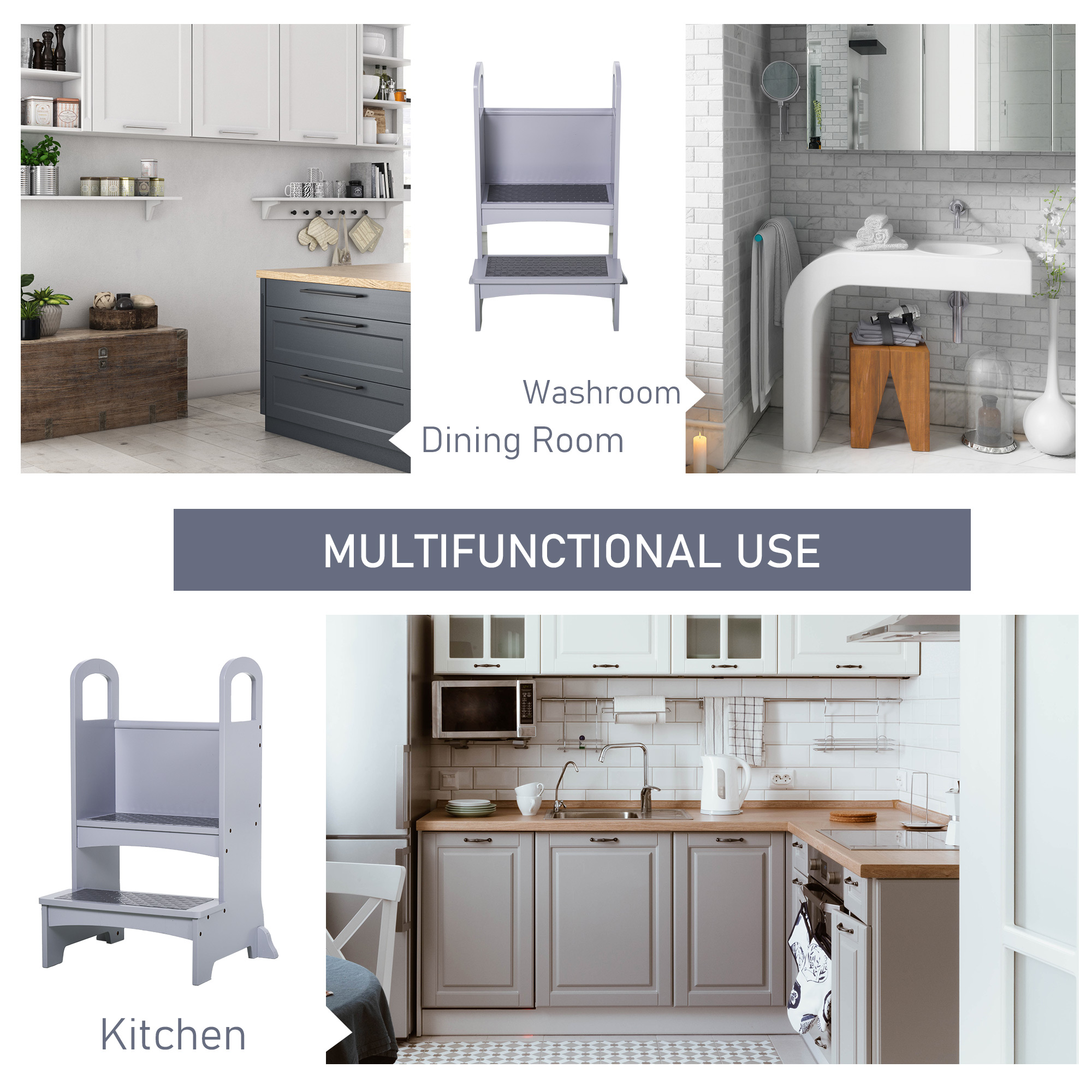 - Multi-Functional: The kitchen tower is suitable for your whole family. You and your kids can use it in any occasion such as kitchen, living room, study room and bathroom. It can be used to take something that is placed high. Your child can learn from you while you cook.