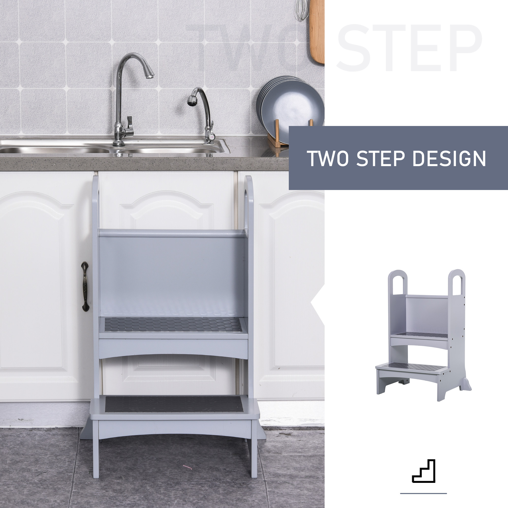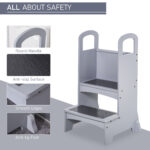 Qaba Kids Step Stool with 2 Steps Support Handles Non-Slip Hardwood Stepping Stool for Children Kitchen Helper Grey | Aosom Canada