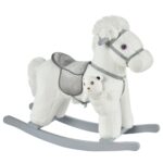 Qaba Kids White Plush Rocking Horse – Soft Bear Ride-On Toy with Fun Sounds, Comfortable Children’s Chair | Aosom Canada