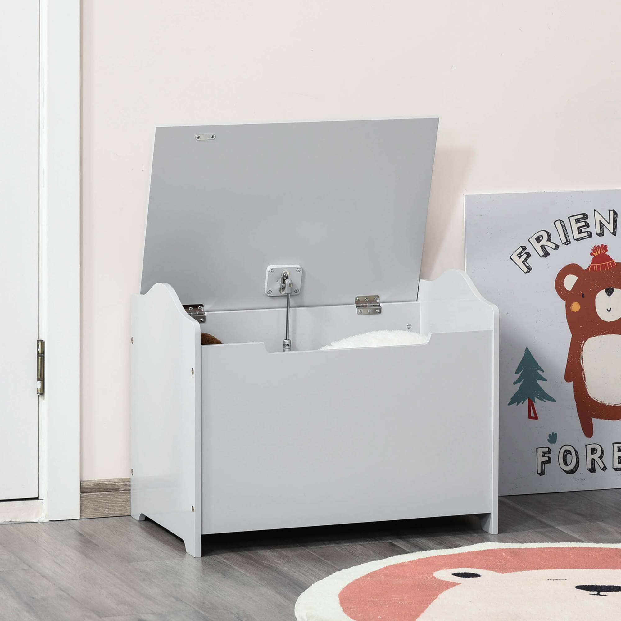 Qaba Large Wooden Toy Storage Box Organizer with Magnetic Hinge for Kids Playroom Chest with Groove Handle Grey | Aosom Canada