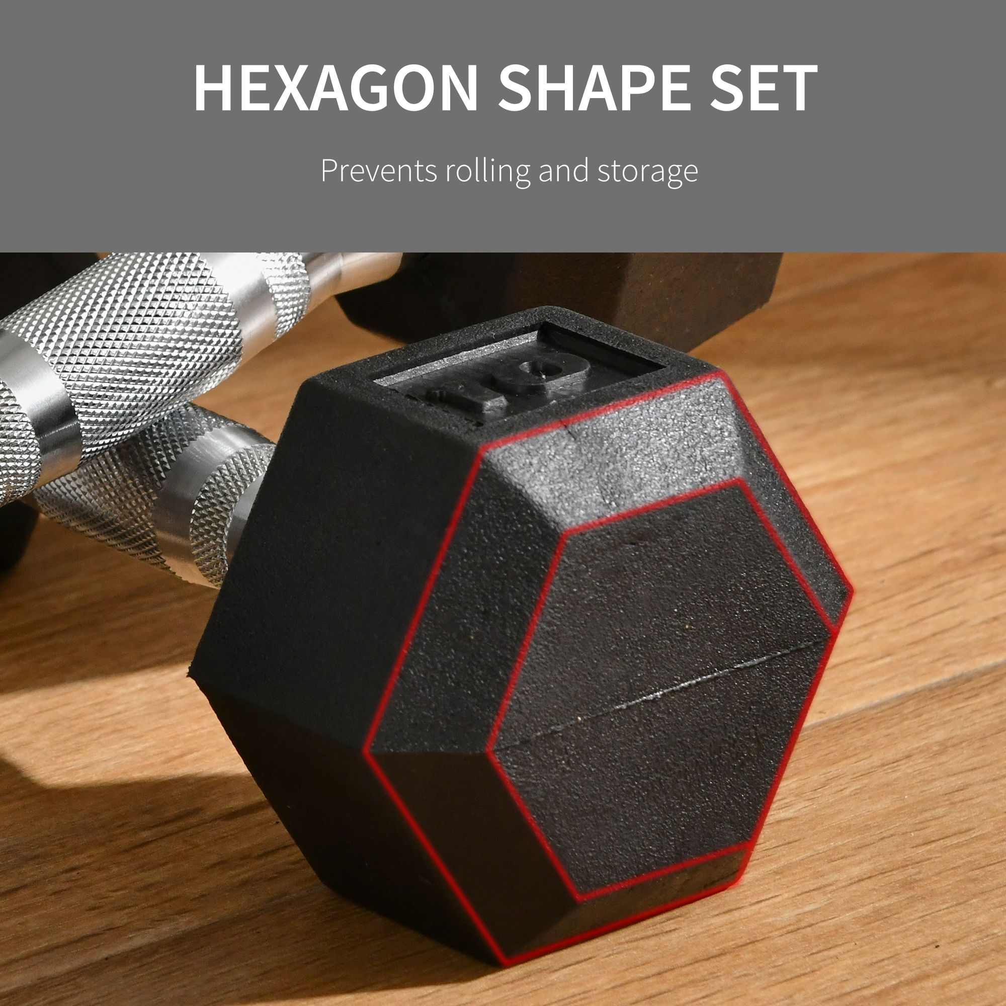 - Hexagon Shape Set: This dumbbellsweights set strengthens and exercises your arms, shoulders, back and more. The hexagon shape helps prevent the weights from rolling during your workout or while in storage.