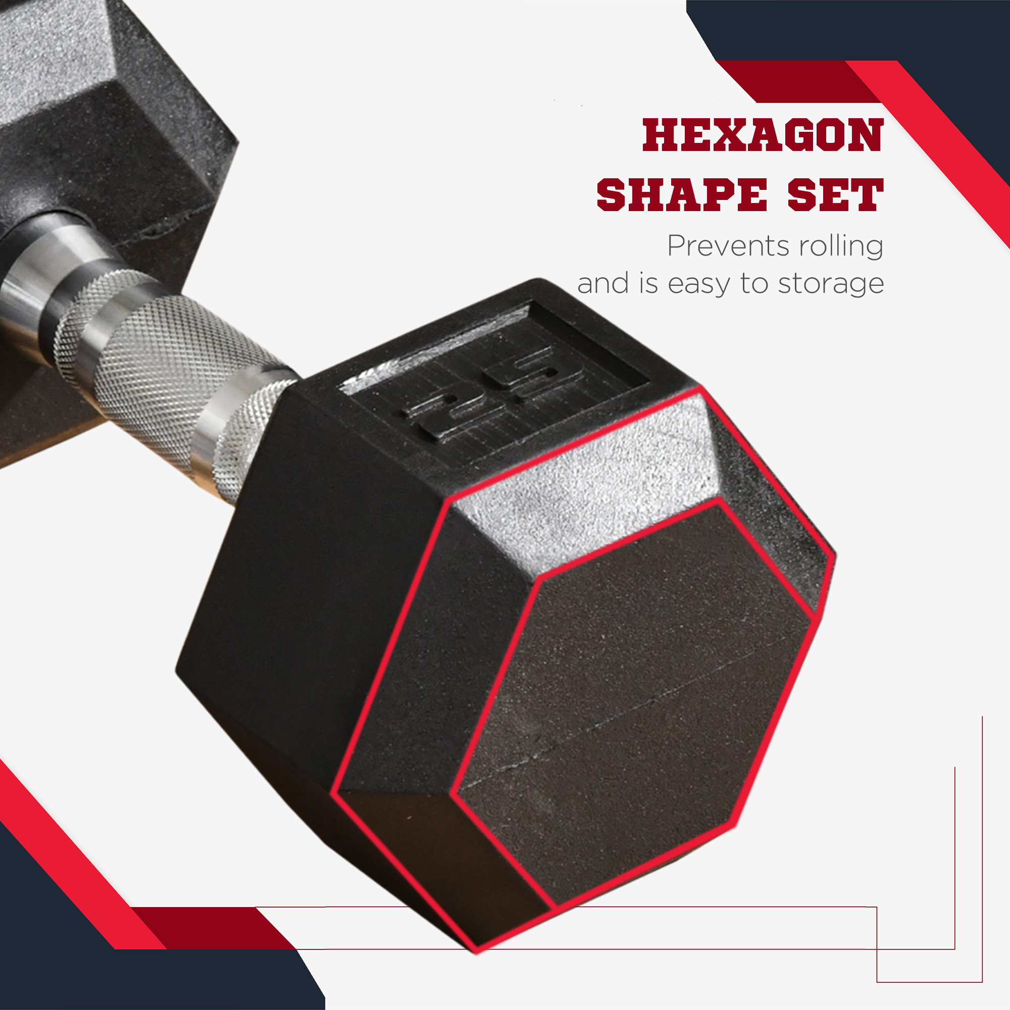 - Hexagon Shape Set: This dumbbellsweights set strengthens and exercises your arms, shoulders, back and more. The hexagon shape helps prevent the weights from rolling during your workout or while in storage.
