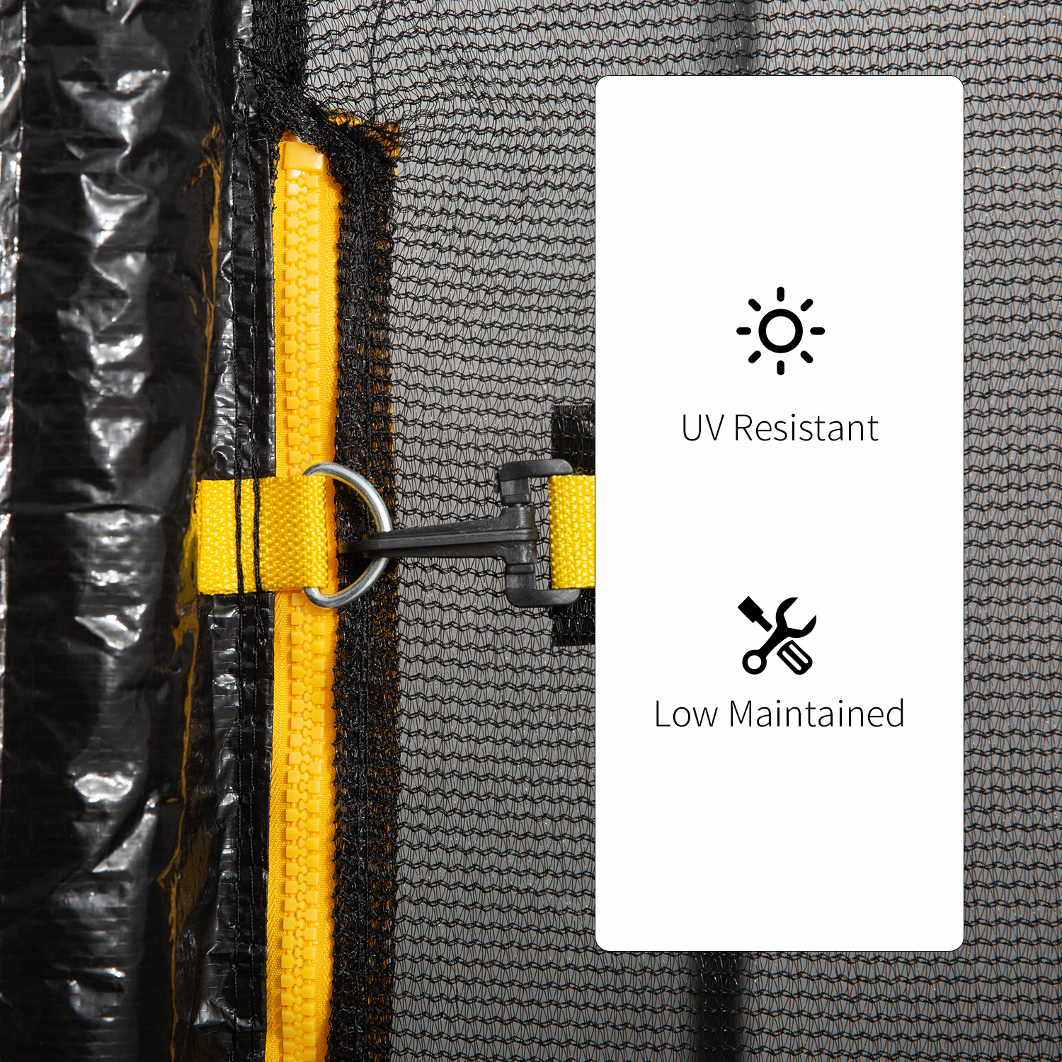 - Selected Material: The trampoline net is made of high density PE mesh, which makes it more solid and durable, and fine weave to ensure little fingers cannot become trapped.