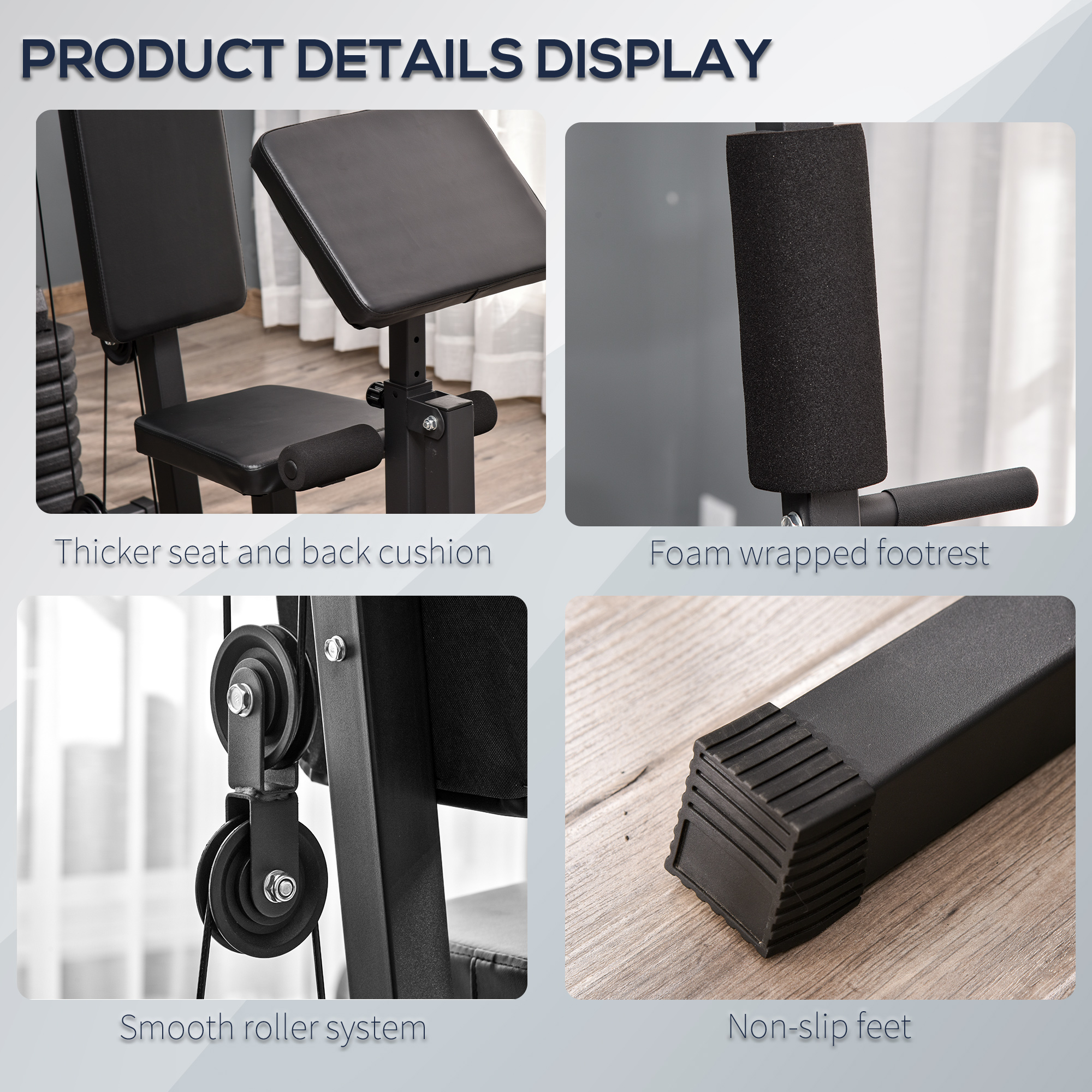 - Solid Construction: This weight machine is made with steel and the total weight of the counterweight is 99 lbs, which includes 9 pieces 10 lbs counterweight blocks and 1 piece 8 lbs counterweight block for many ways to workout. The home gym equipment includes a non-slip feet pad for added stability and safety.