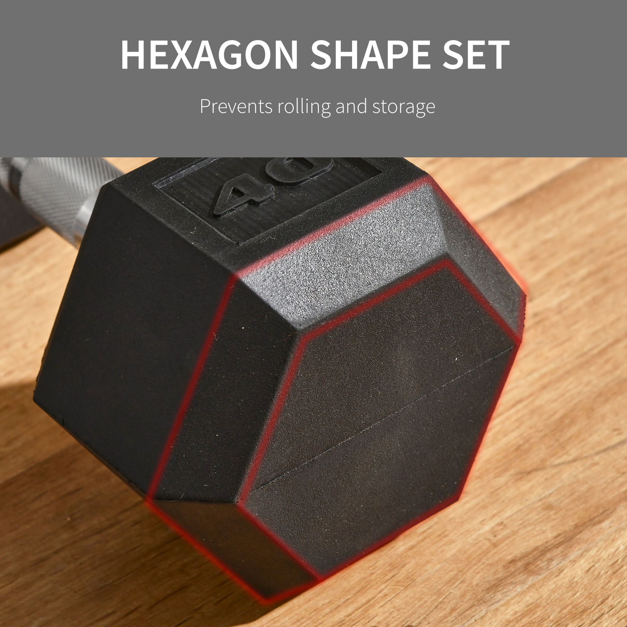 Soozier Rubber Hex Dumbbells: 40lbs Hand Weights for Strength Training & Fitness Workouts at Home or Office, Black | Aosom Canada