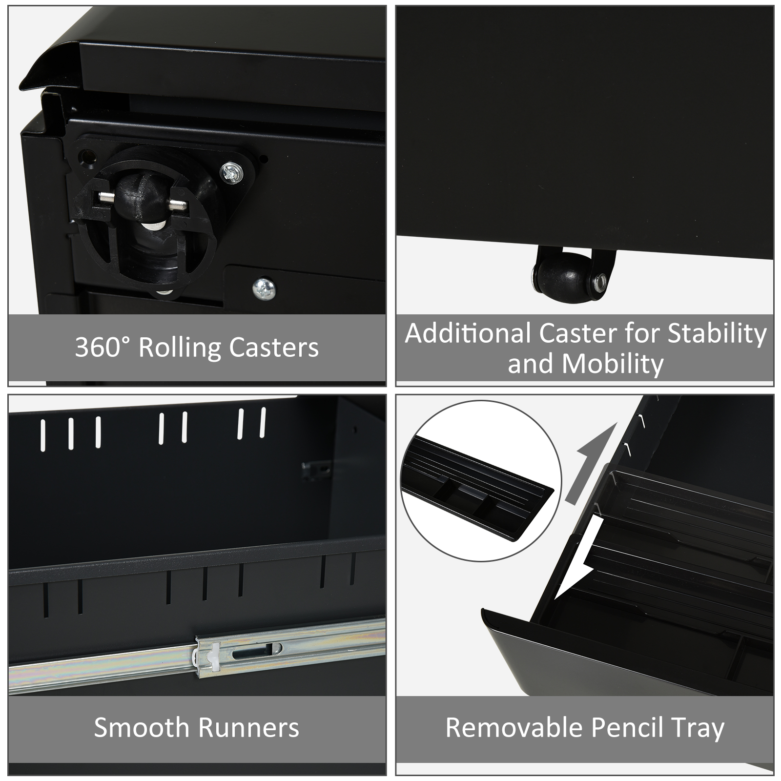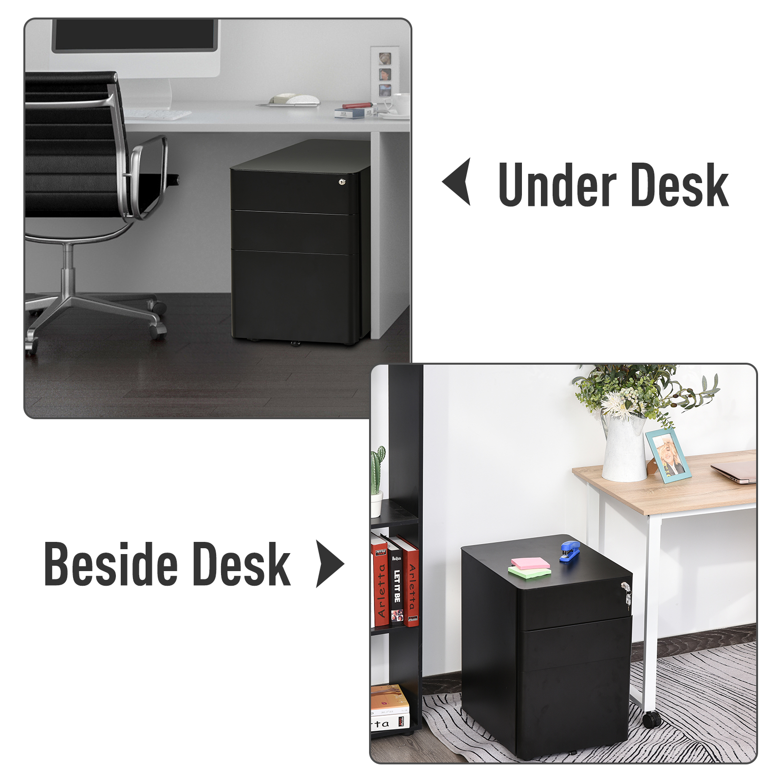 Vinsetto Compact File Vault: 3 Lockable Drawers & Smooth-Rolling Mobility for Secure Home Office Organization, Black | Aosom Canada
