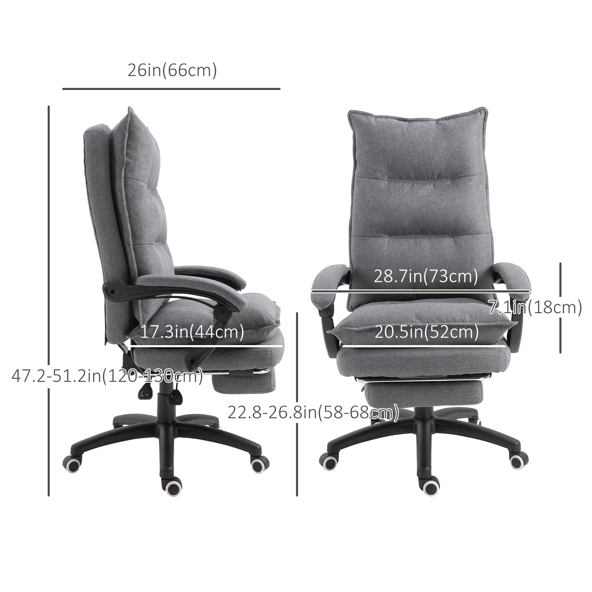 Vinsetto Linen Recliner Office Chair: 360° Swivel, Adjustable Height, Footrest & Double Padding, Grey | Aosom Canada